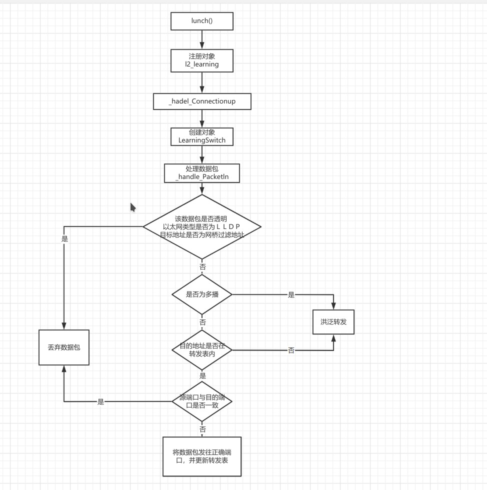 阅读L2_learning模块代码,画出程序流程图,使用 tcpdump 验证Switch模块。