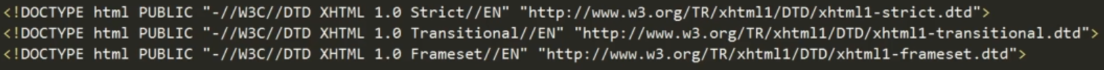 XHTML 1.0的三种类型:Strict(严格)、Transitional(过渡)、Frameset(框架)
