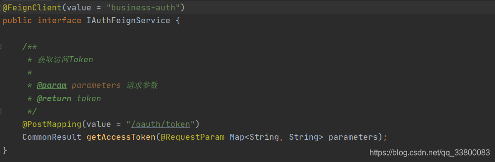 我在另一个微服务B中想要调用这个接口: