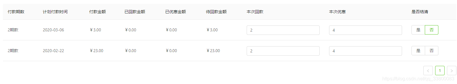 我要将各自的本次回款存到各自的对象中,这个通过监听方法监听输入的内容,并传入代表当前行数据的 record 参数就可以做到了。