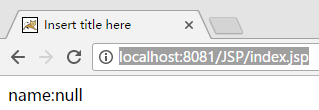 <%@ page language="java" errorPage="/error.jsp" contentType="text/html; charset=UTF-8" pageEncoding="UTF-8"%> <% String path = request.getContextPath(); String basePath = request.getScheme()+"://"+request.getServerName()+":"+request.getServerPort()+path+"/"; %> <!DOCTYPE html PUBLIC "-//W3C//DTD HTML 4.01 Transitional//EN" "http://www.w3.org/TR/html4/loose.dtd"> <html> <head> <base href="<%=basePath%>"> <meta http-equiv="Content-Type" content="text/html; charset=UTF-8"> <title>Insert title here</title> </head> <body> <% String name = (String)pageContext.getAttribute("name"); %> name:<%=name %> </body> </html>