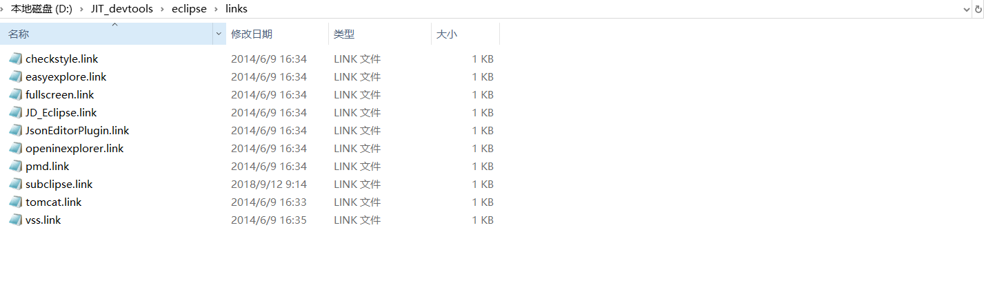 在eclipse目录下新建 links 文件夹, 并新建文件,name.link, 内容如下: