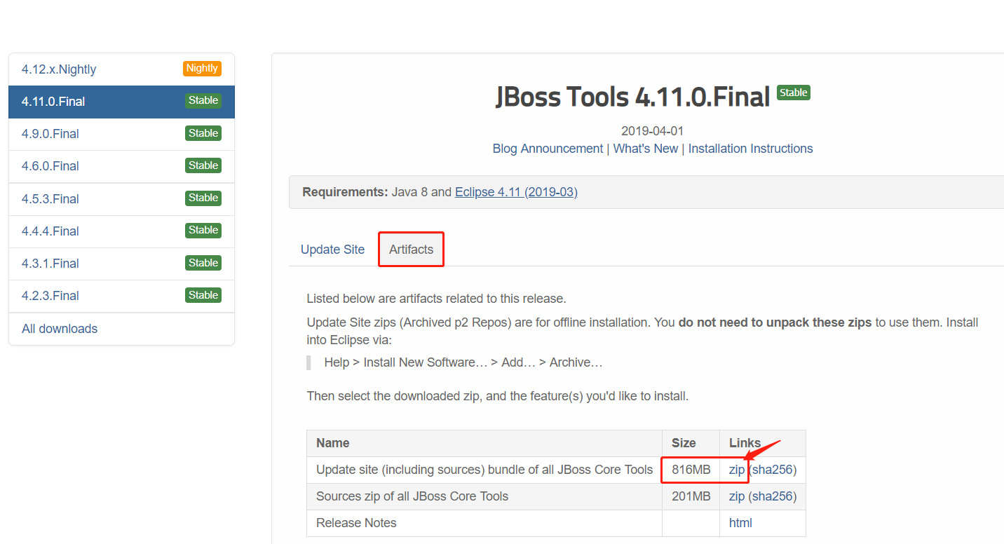 首先去http://tools.jboss.org/官网去下载JBoss Tools插件包。
