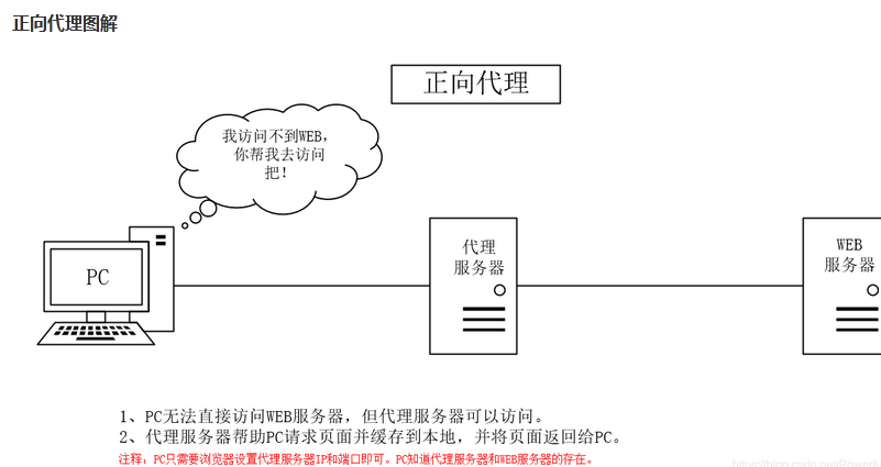 普通的转发代理服务器是客户端与原始服务器之间的一个中间服务器。为了从原始服务器获取内容,客户端发送请求到代理服务器,然后代理服务器从原始服务器中获取内容再返回给客户端。客户端必须专门地配置转发代理来访问其他站点,如在浏览器中配置代理服务器地址及端口号等。