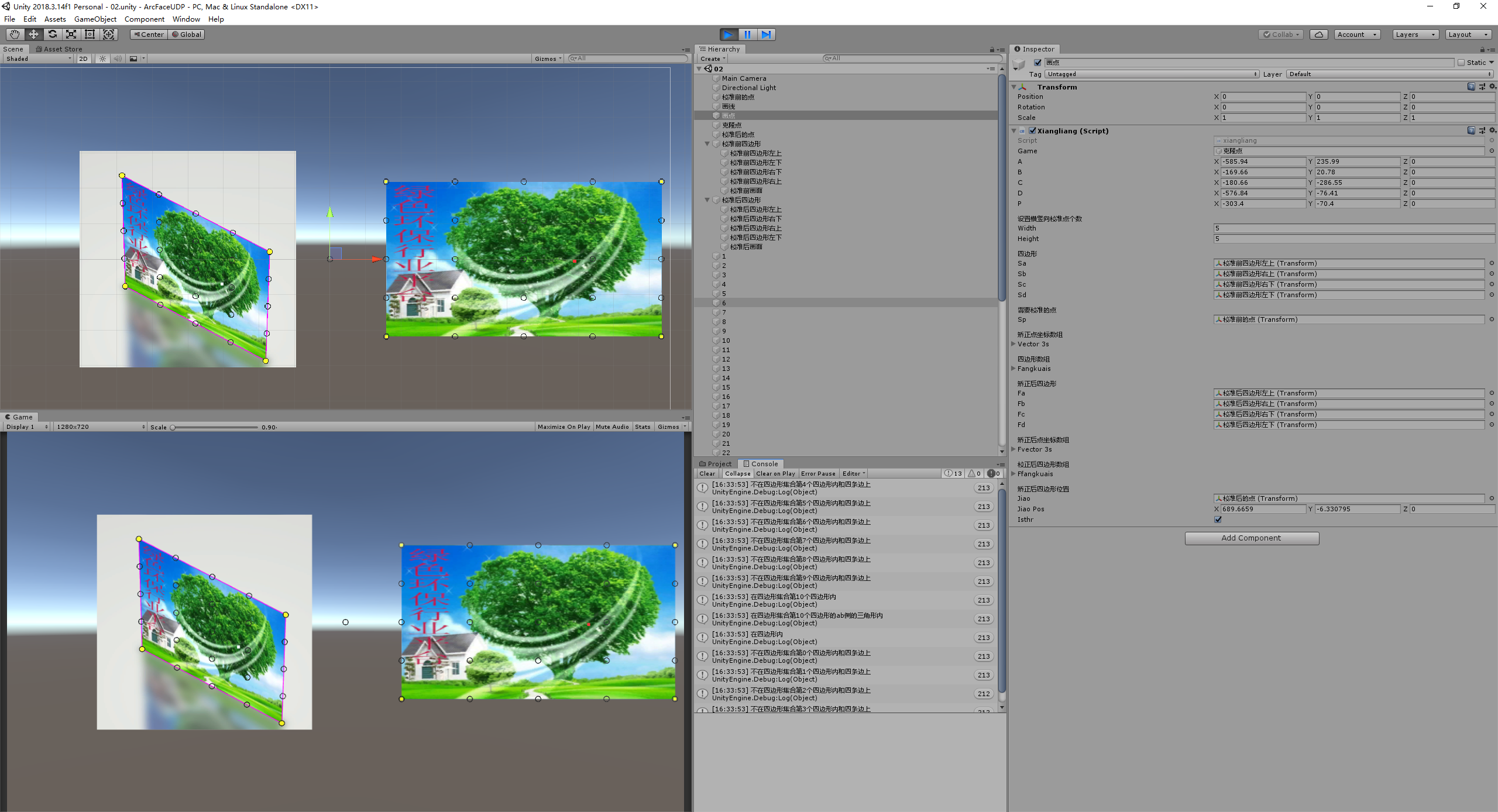 Debug.Log("在四边形集合第" + i + "个四边形的ac对角线内");
