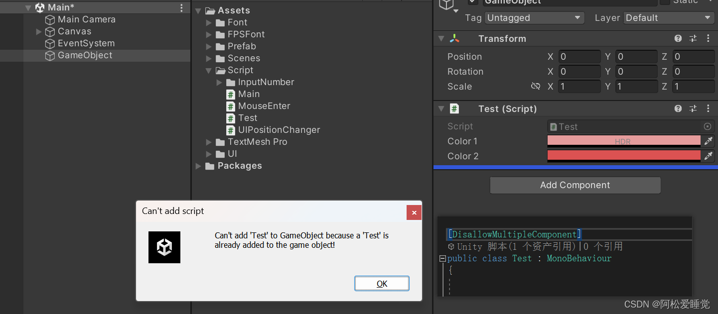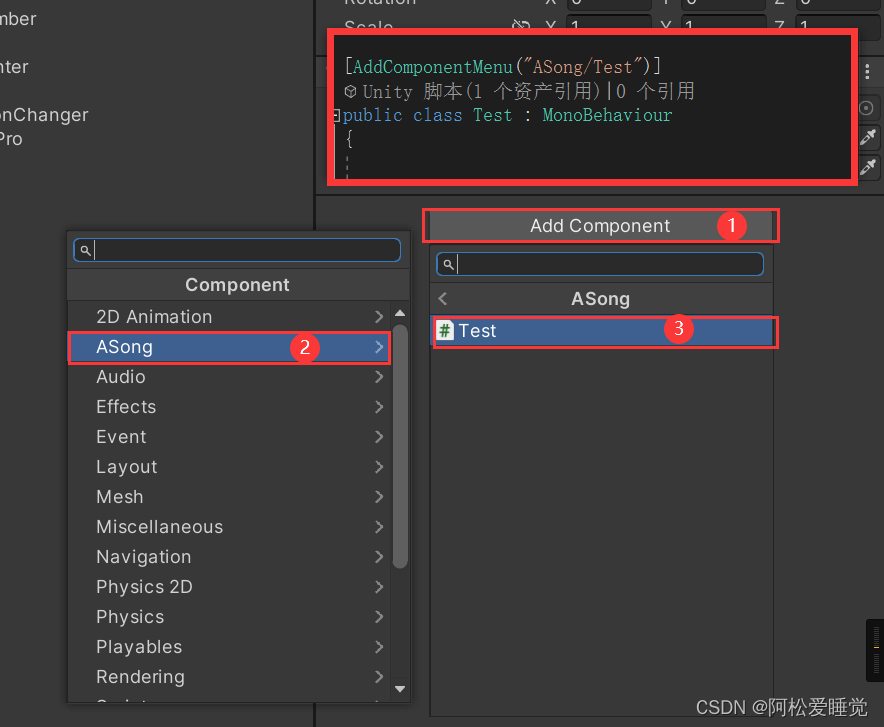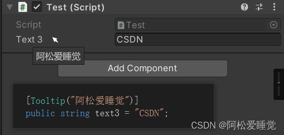 [AddComponentMenu("xxx/xxx")] 该属性是一个用于自定义脚本的特性,它允许你为脚本定义一个自定义的菜单路径,以便在编辑器中通过Add Component菜单添加该组件时能够找到它。这个特性对于组织复杂的工程或者为非程序员用户提供易于理解的组件非常有用。