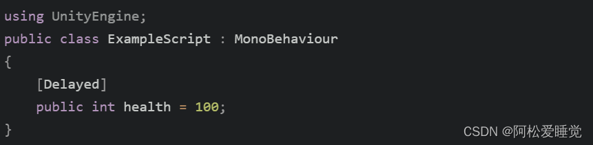 比如在这段脚本中,health字段在Inspector中会有一个延迟更新的行为。当你开始在Inspector中编辑health的值时,Unity不会立即应用这个新值,而是等到你完成输入(比如按下回车键或点击其他字段)后才会更新。