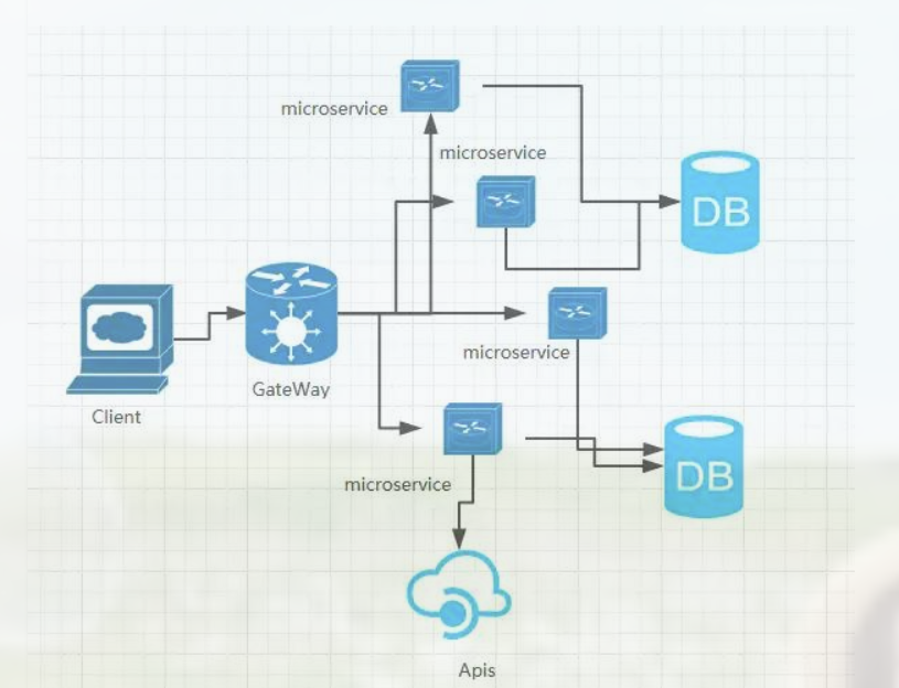 微服务架构,主要是中间层分解,将系统拆分成很多小应用(微服务),微服务可以部署在不同的服务器上,也可以部署在相同的服务器不同的容器上。当应用的故障不会影响到其他应用,单应用的负载也不会影响到其他应用,其代表框架有Spring cloud、Dubbo等。其架构图如下所示: