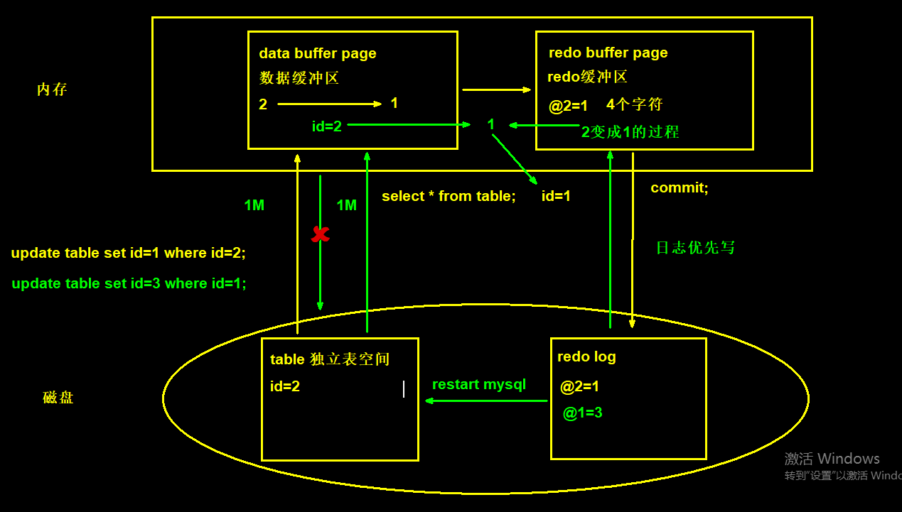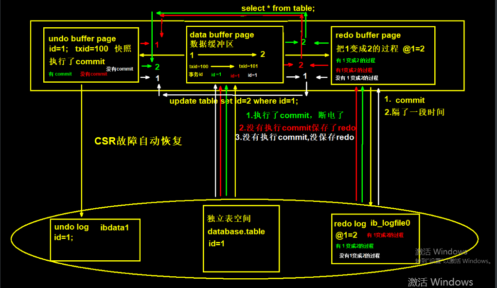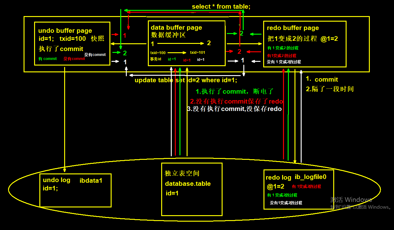 3)id=2变成id=1的变化过程会记录到redo buffer page中
