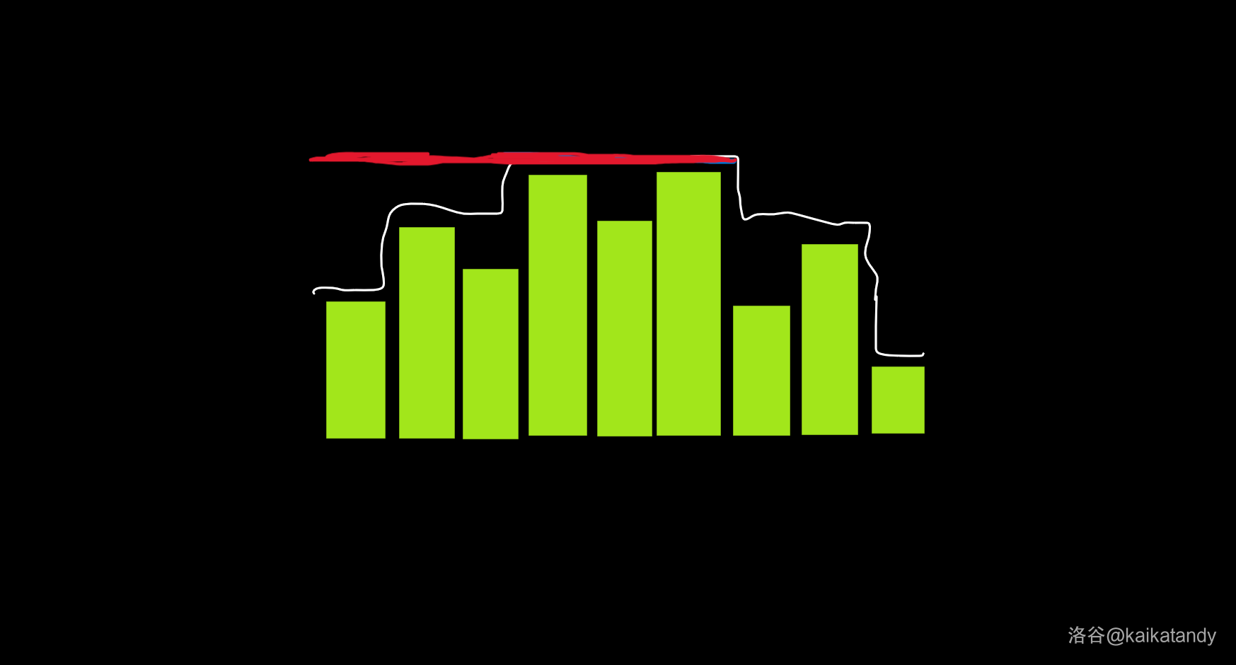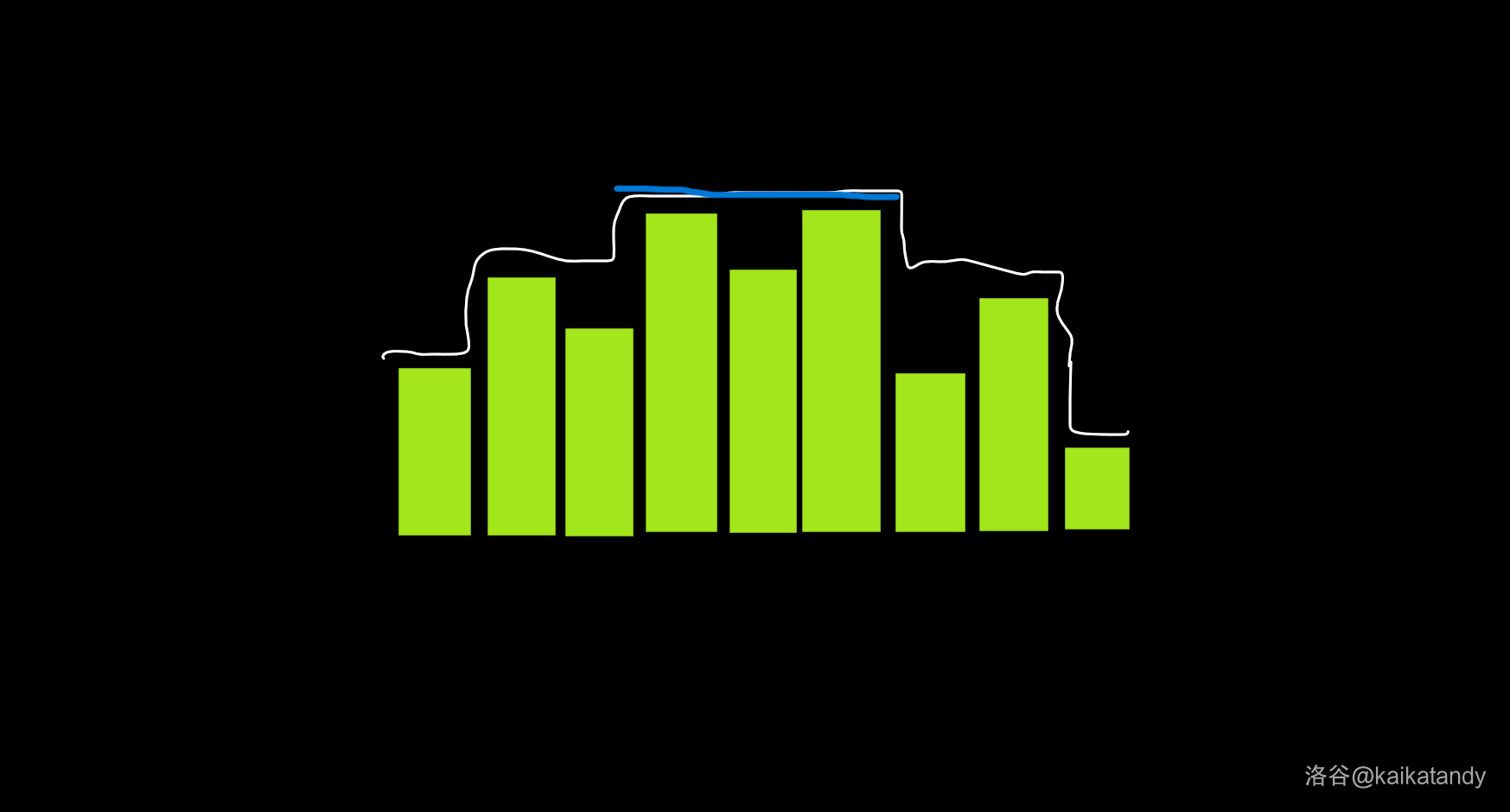 - 找到 \([1,n]\) 内最靠左/右的最大值(山顶的两端)。