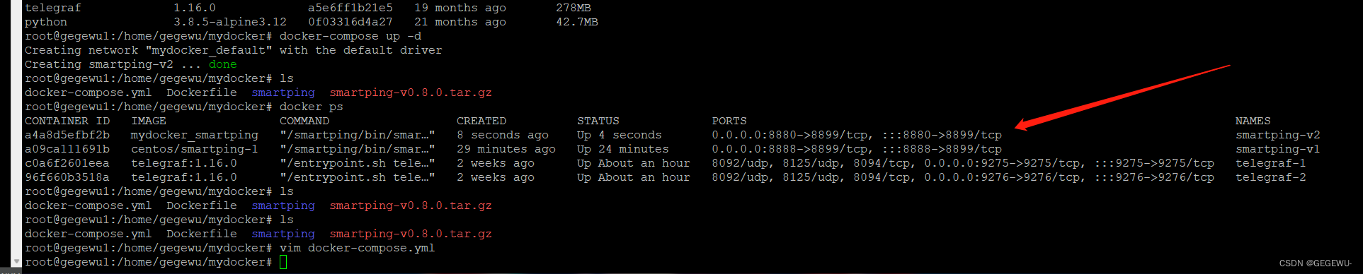root@gegewu1:/home/gegewu/mydocker# docker-compose up -d