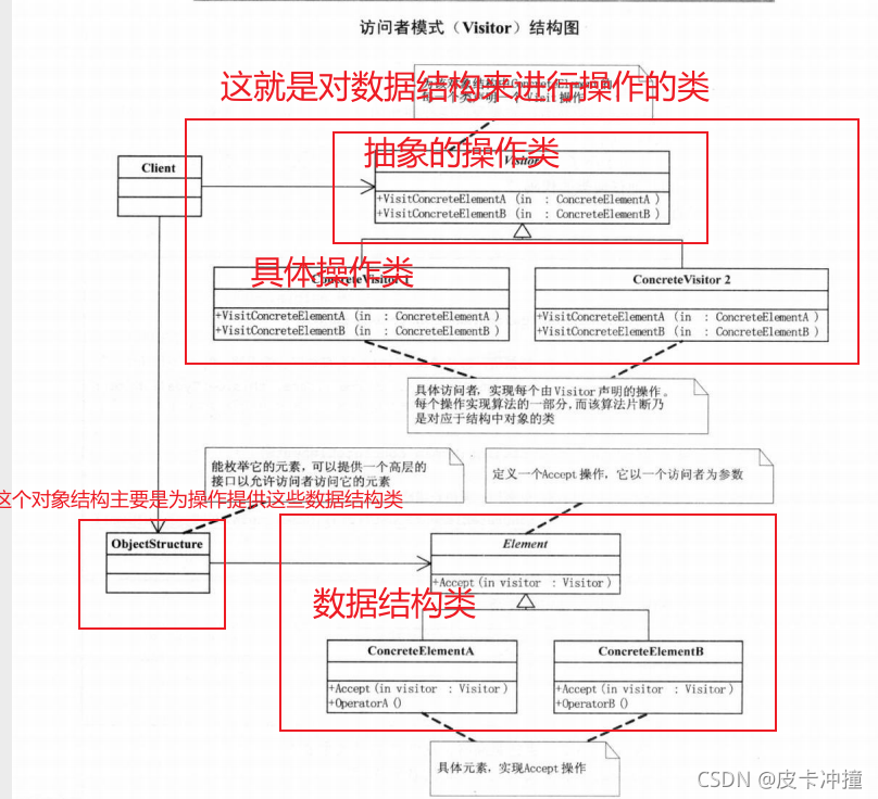 首先自己看访问者解释就是做了一个分解完善的过程,把里面的话都理解以后在结合它类图看就有不一样的认识了,