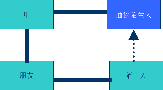 那么通过这种方式,甲通过和陌生人的抽象类进行沟通,从而不和陌生人这个类发生联系,符合了上说原则。