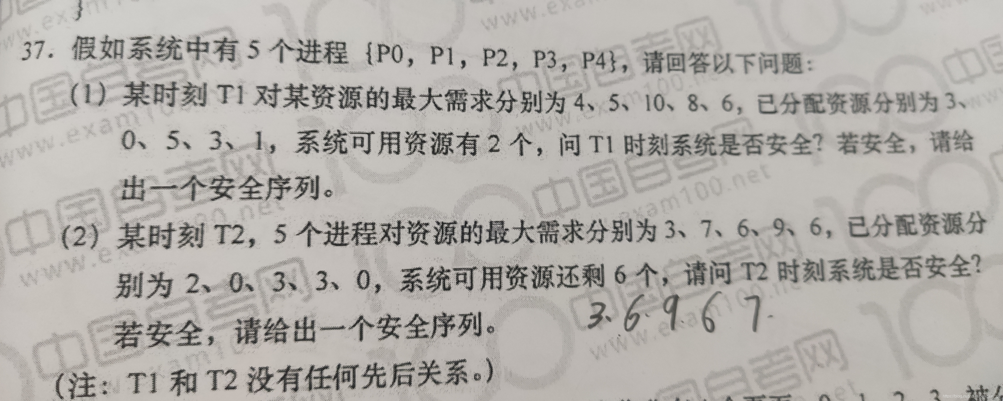 首先可以肯定的是这个资源的分配根据你还剩余的资源,能不能让一个进行先执行完释放资源,这个题里面的p0只需要一个资源,现在我们手中有两个,那么p0的进程是可以被释放的,当p0的进程被释放后我们手里剩余的一个资源加上p0释放的资源一共是有5个资源的,而根据上图我们算出的其它进程需要的资源都是5,那么我们手中的资源刚好可以分配给其中任意一个让其完成进行的执行释放资源,所以只要第一个执行的是p0进行,那么就不会出现死锁的情况。