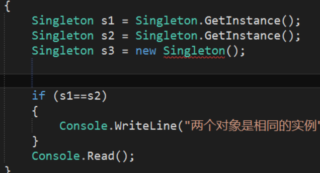 那么在类中的单例模式其实也加上了一个限制,使其在被实例化时只能通过自己实例化自己就行了。