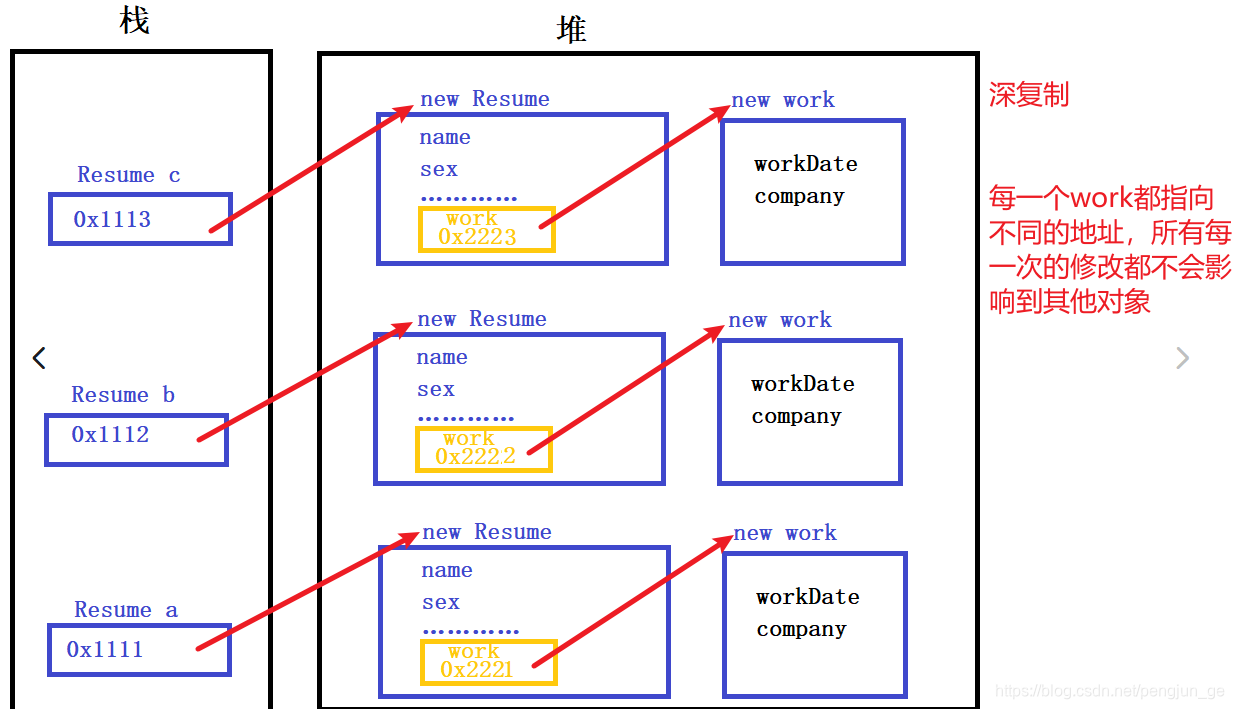 把引用对象的变量指向复制过的新对象,而不是原有的被引用的对象。