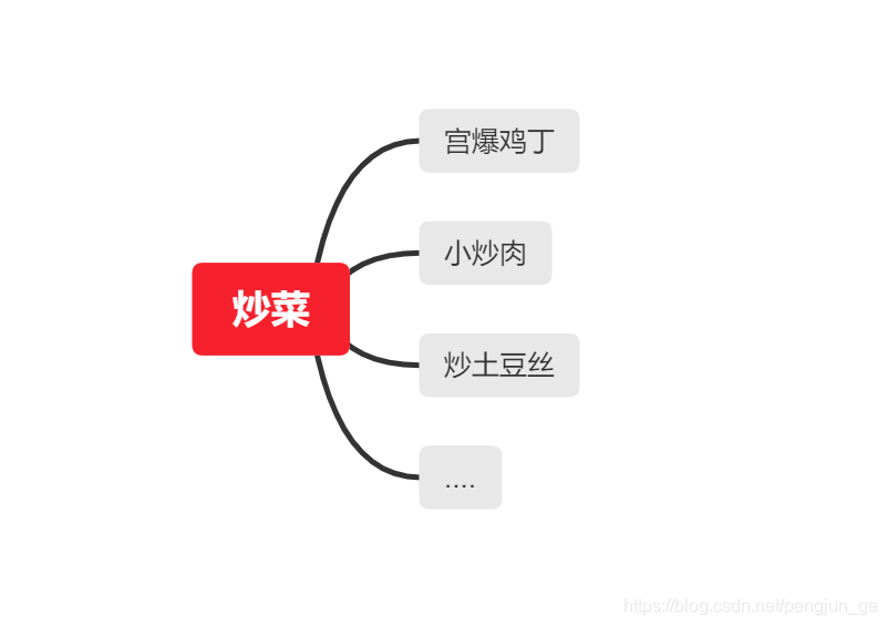 还是以饭店为例子,在饭店中有很多的菜品,有炒菜、凉菜、干锅、、等等,那么我们就以这些菜品为一个类,具体的菜为它的子类,如果我们要符合依赖倒转原则的话就需要有一个接口在这里了,这样菜品类就不需要依赖于子类来实现了,只需要把接口让子类去实现这样还能减少耦合度,也方便菜品这个类的复用,还易拓展了。