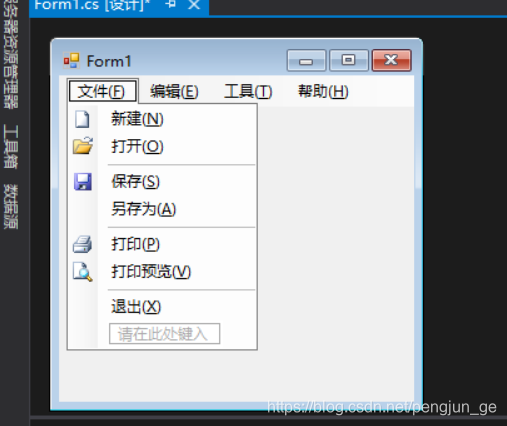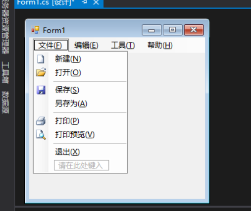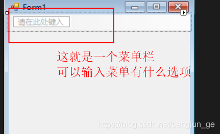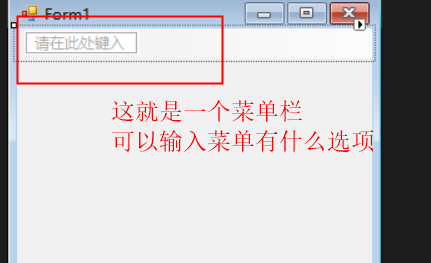 然后在窗体上就看到这么一个控件,在这个控件上可以直接输入要建菜单选项的名称,还可以建二级选项。