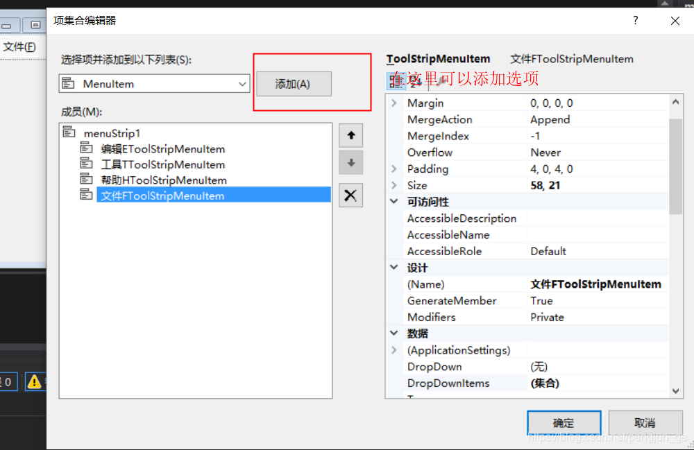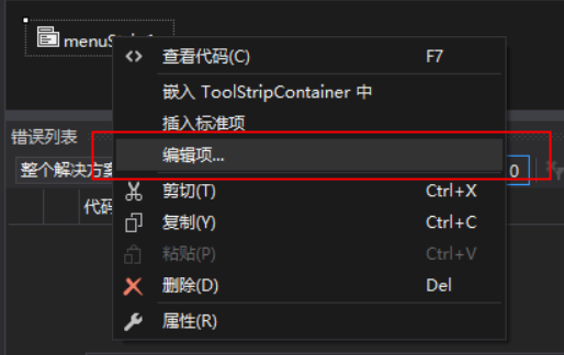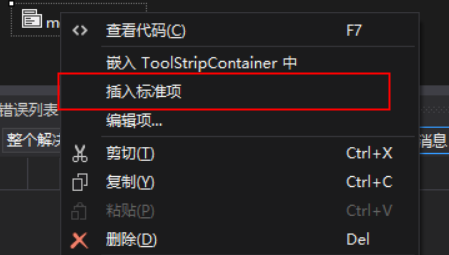 这个上面还有更方便的一个功能,那就是直接就有已经建好的菜单的选项,可以通过控件直接添加,在我们窗体的下面有一栏是这个控件的存放位置,插入的这个标准项就是上图的样式,如果有要更改一级选项的可以通过控件的编辑项进入