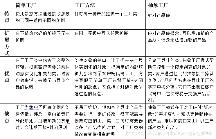 首先是我们知道的类实现了前后端的分离,它让我们前端与后端的代码进行了分离,方便了我们对代码整理有修改,然后是简单工厂,这是学习的第一个工厂,这个工厂最初了解到的功能就是解耦合,然就是封装复用,也是对以前学习的多态的一个学习,在它之后是一个工厂模式,我对于它的理解是简单工厂的迭代版本,当时只了解是工厂方法克服了简单工厂违背开放-封闭原则的缺点,又保持了封装对象过程的优点。工厂方法的最大优点就是体现出了单一职责,而简单工厂就是一个封装解耦的功能,对于代码的开放封闭原则简单工厂无法实现,但是工厂模式就实现了开放封闭原则,最后一个抽象工厂模式是这三个里面最后一个了解的,现在知道的是抽象工厂的功能是用来替换数据库,它的的概念是:提供一个创建一系列相关或相互依赖对象的接口,而无需指定它们具体的类。这三种工厂其实就是一个迭代的过程,有什么样的需求就应需求而进行了改进,通过了解这么一个过程,对于三个工厂的学习应该就会更加的简单。最后有一张图非常能体现这个关系,这图在网上找到希望能够对大家有帮助。