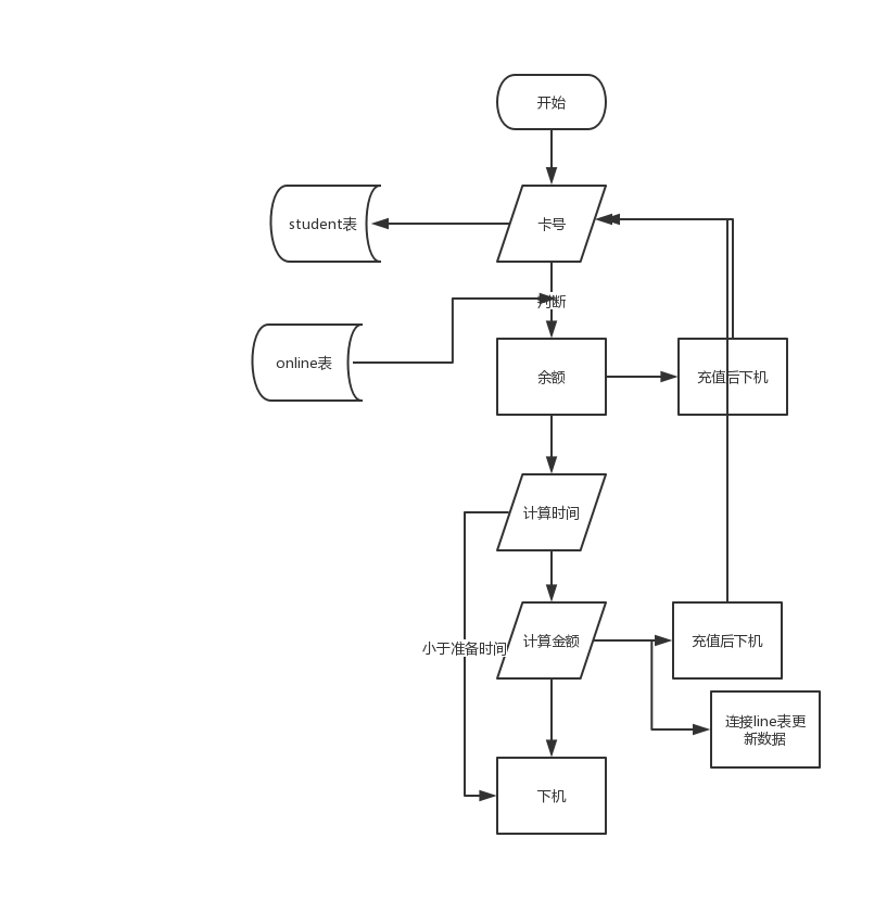 在敲完机房后自己又重新的看了看自己的上下机程序,根据代码的流程画了这两张流程图,在画完后思路就很清晰了,真的是画完流程图后就知道代码该怎么写了,但是前提也要有一些代码基础,自己在这方面还有好好学习。