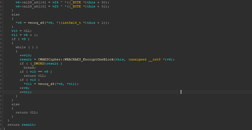 DFA故障攻击是一种目前处理白盒aes加密的主流方法,过程就是在进行加密是修改indata_state的内容,注入随机字节,原理网上也很多,这里不在赘述,我们回到代码