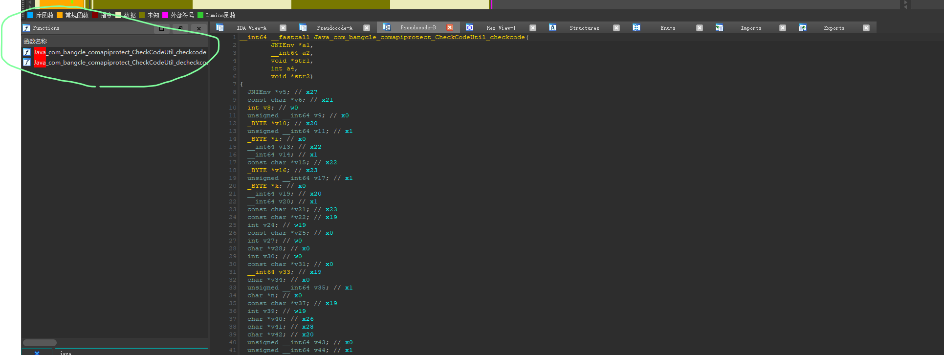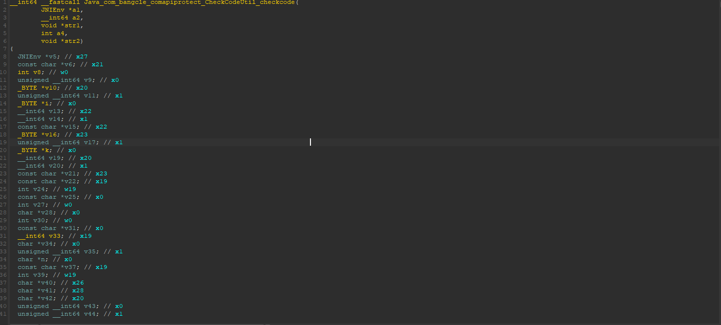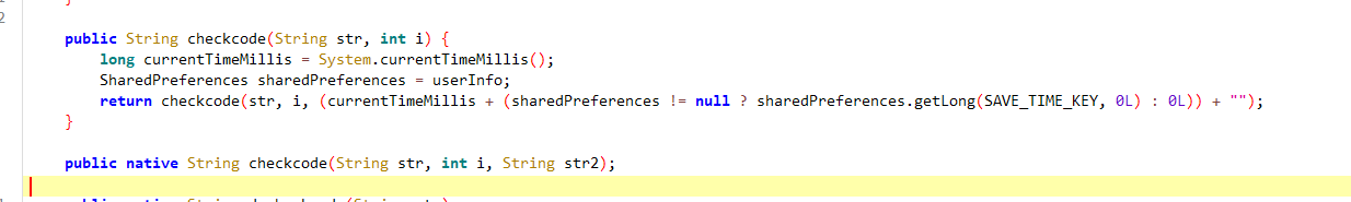 最后跟进到checkcode方法,这个含有三个参数的checkcode是写在了native层,hook看一下