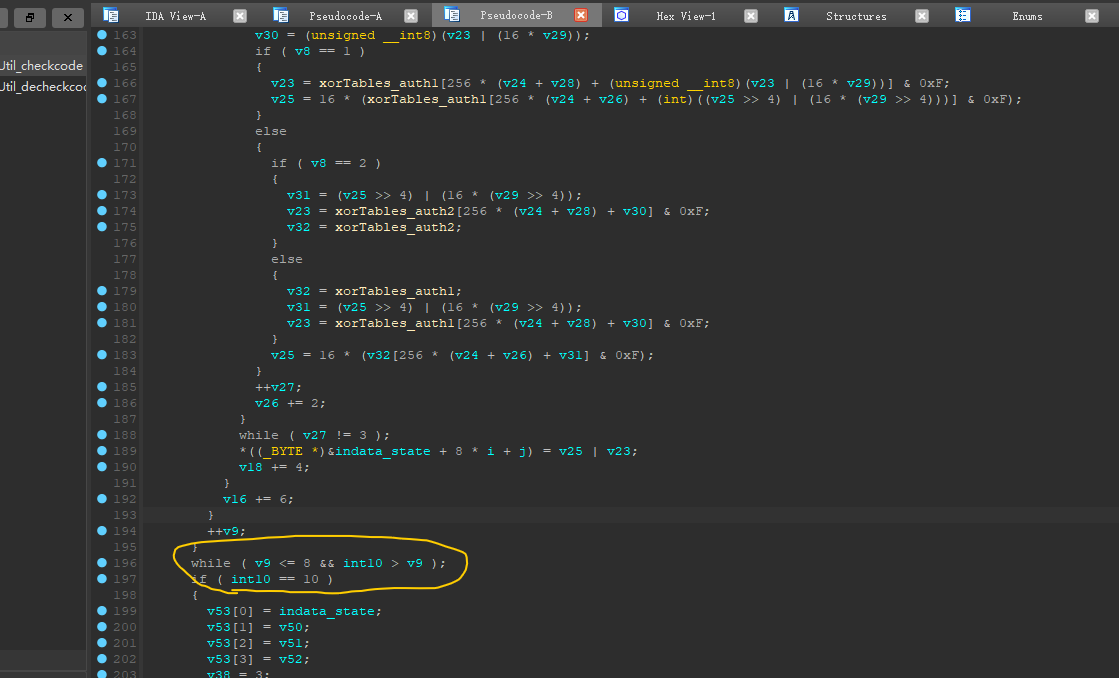 可以发现第四个参数是0xa,也就是数字10,这里判断应该就是加密轮次