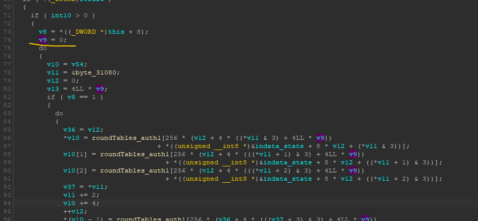 初始被赋值为0,这里可以看一下v9到底被++了多少次,