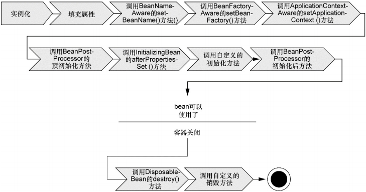 9.bean准备就绪,可以被应用程序使用了,它们将一直驻留在应用上下文中,知道该应用上下文被销毁;