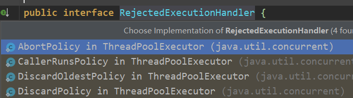 public ThreadPoolExecutor(int corePoolSize, 核心线程池大小 int maximumPoolSize, 最大核心线程池大小 long keepAliveTime, 超时了没有人调用就会释放 TimeUnit unit, 超时的单位 BlockingQueue<Runnable> workQueue) { 阻塞队列 this(corePoolSize, maximumPoolSize, keepAliveTime, unit, workQueue, Executors.defaultThreadFactory(), 线程工厂:创建线程的一般不用动 defaultHandler); 拒绝策略 }