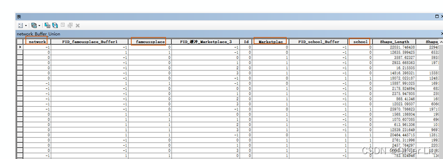 3.对学校、超市、景点的新字段赋值为1,道路为-1;