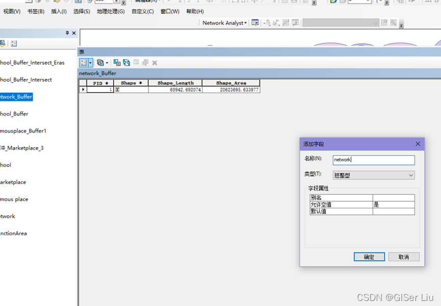 2.打开每个缓冲区结果的属性表,对每个结果添加一个短整型评分(原名)字段;