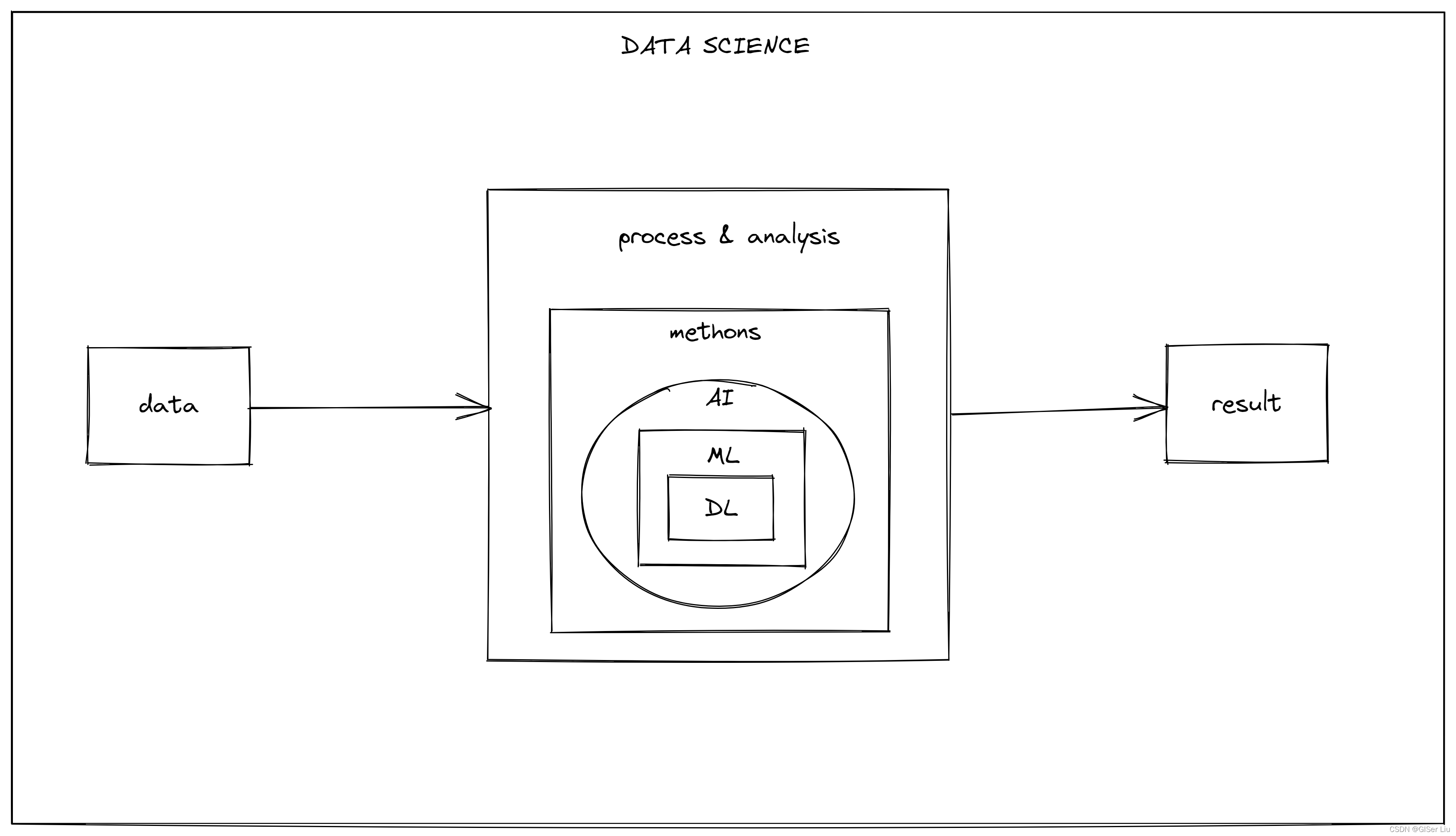 在纸上或使用Excalidraw(Excalidraw | Hand-drawn look & feel • Collaborative • Secure)等在线应用程序绘制草图,了解AI,ML,深度学习和数据科学之间的差异。添加一些这些技术都擅长解决的问题的想法。