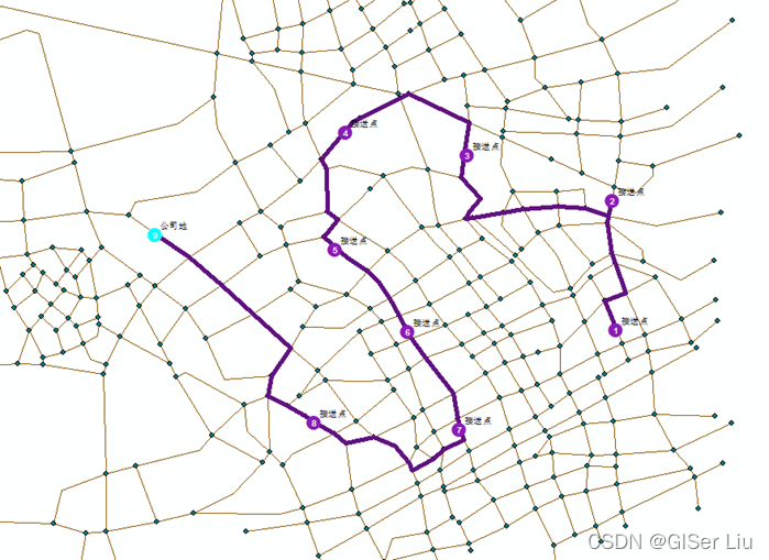 - 某公司班车需要接送员工上下班,已知停靠的站点,请使用网络分析提供一条考虑了最优排序且时间最少的路径,作为班车的固定路线。
