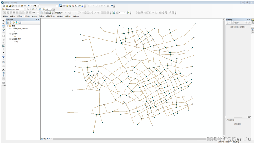 1、保证网络分析工具加载好的情况下,右击主菜单空白处,加载network analysis工具,并导入数据 道路_ND。