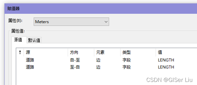 7.打开评估者,查看道路属性,添加meters(长度)并设置其属性;