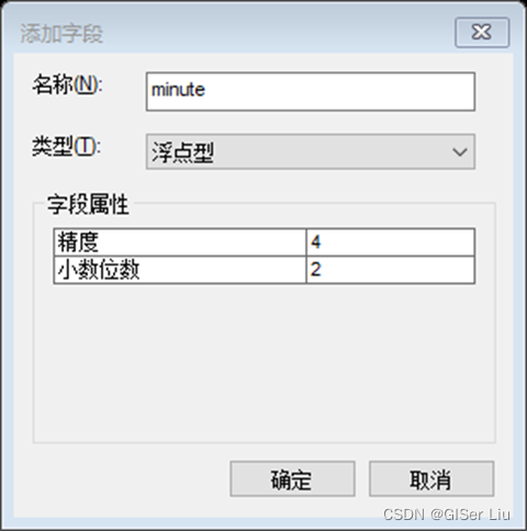 3.发现属性表中没有时间字段,添加字段minute,设置相关参数;