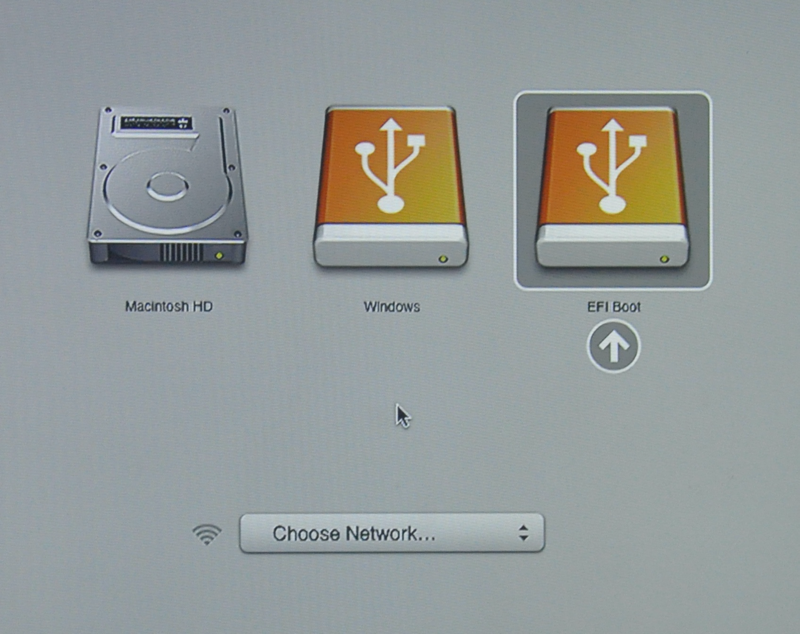 - 要开始安装,请打开设备电源,然后立即按住Option键,直到看到启动菜单。