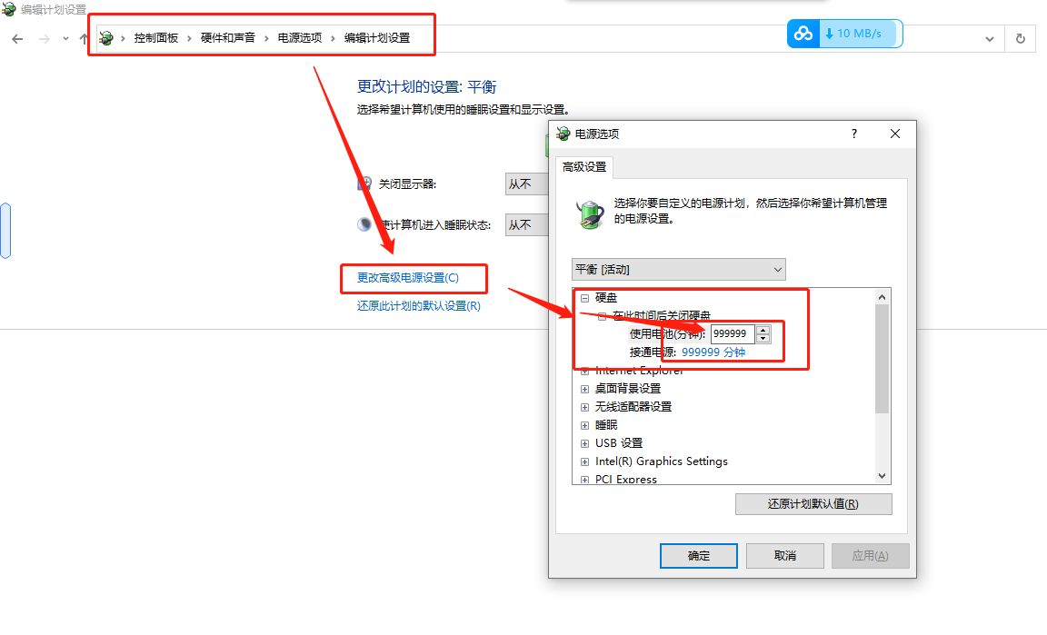 4、配置优化。将电源管理配置如下,不然光驱位置硬盘掉盘