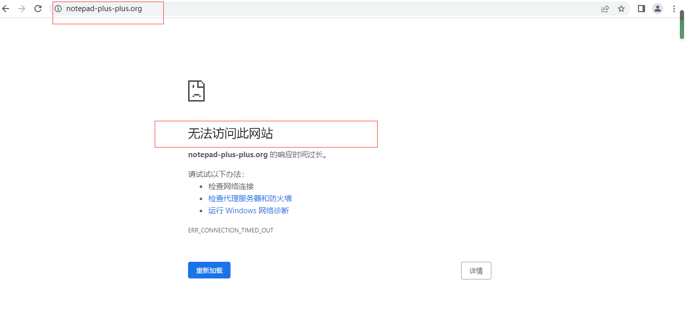 今天想更新下notepad++,打开发现相应超时。如上所示
