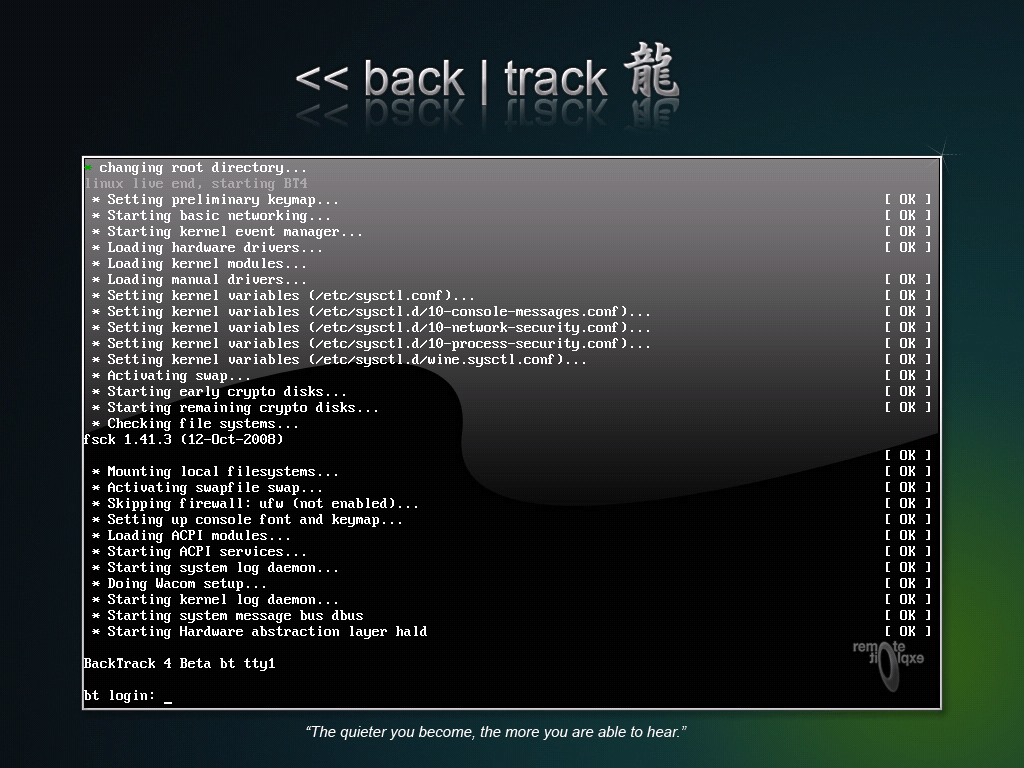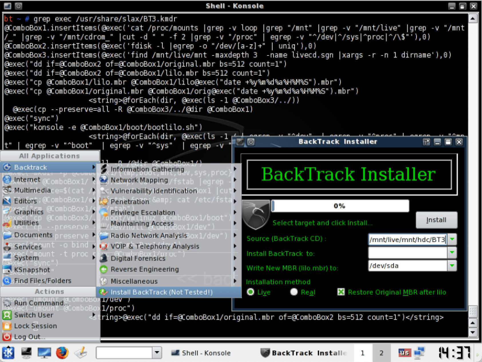 随着计算机硬件每年都变得更加强大,使用虚拟机变得更加容易。然后,用户开始希望能够安装BackTrack。社区开始提供关于如何手动安装BackTrack的指南,并通过终端创建了一个官方教程。现在的目标很明确,BackTrack需要一个 "简单 "的安装程序。2009年6月,在BackTrack 4 "Pre-Final "中出现了一个图形化的安装程序。