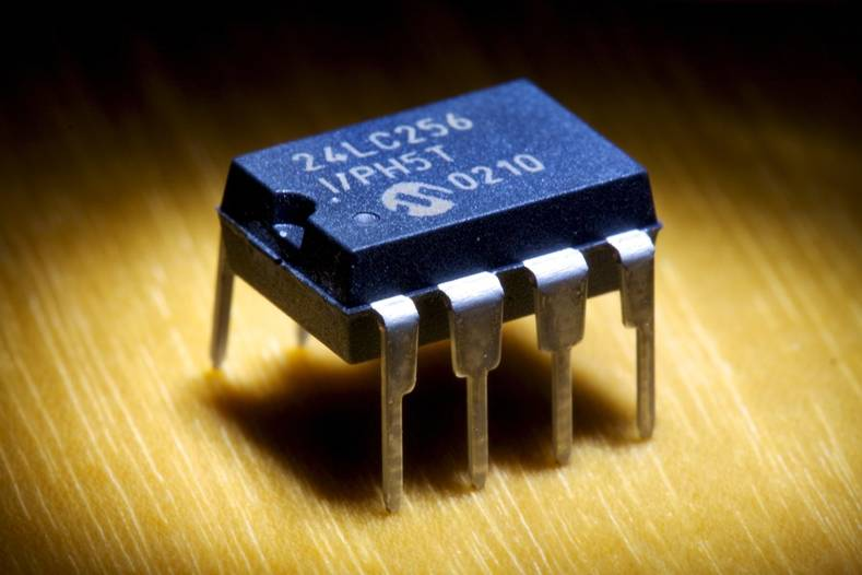 每个存储单元(晶体管)独立控制,通过双层栅极结构(浮栅和控制栅)实现电擦写。也就是说随机访问和修改任何一个字节,可以往每个bit中写入0或者1。结构复杂,存储密度较低,容量通常较小(KB到MB级别)。广泛应用于需要保存用户设置、设备参数或运行日志的场景。在物联网、汽车电子、工业控制等领域中,它往往是配置数据存储的首选。日常我们常接触芯片型号有AT24C02、FM24C02、CAT24C02等,其常见的封装多为DIP8,SOP8,TSSOP8等。