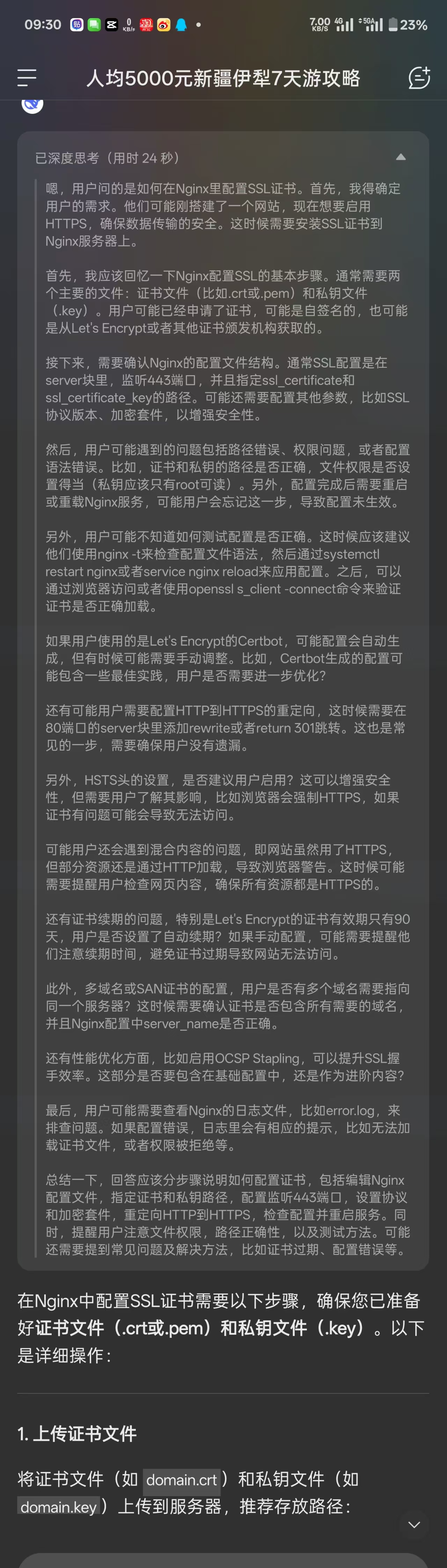 在Nginx中配置SSL证书需要以下步骤,确保您已准备好**证书文件(.crt或.pem)**和**私钥文件(.key)**。以下是详细操作: