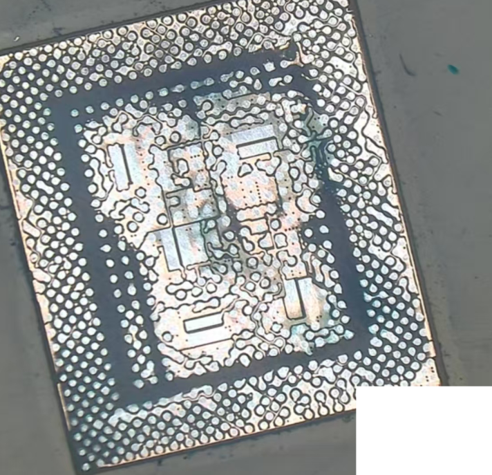 上图两个是内存,内部有4个晶圆拼接一个完整的芯片,内部的外表是栅格的形状