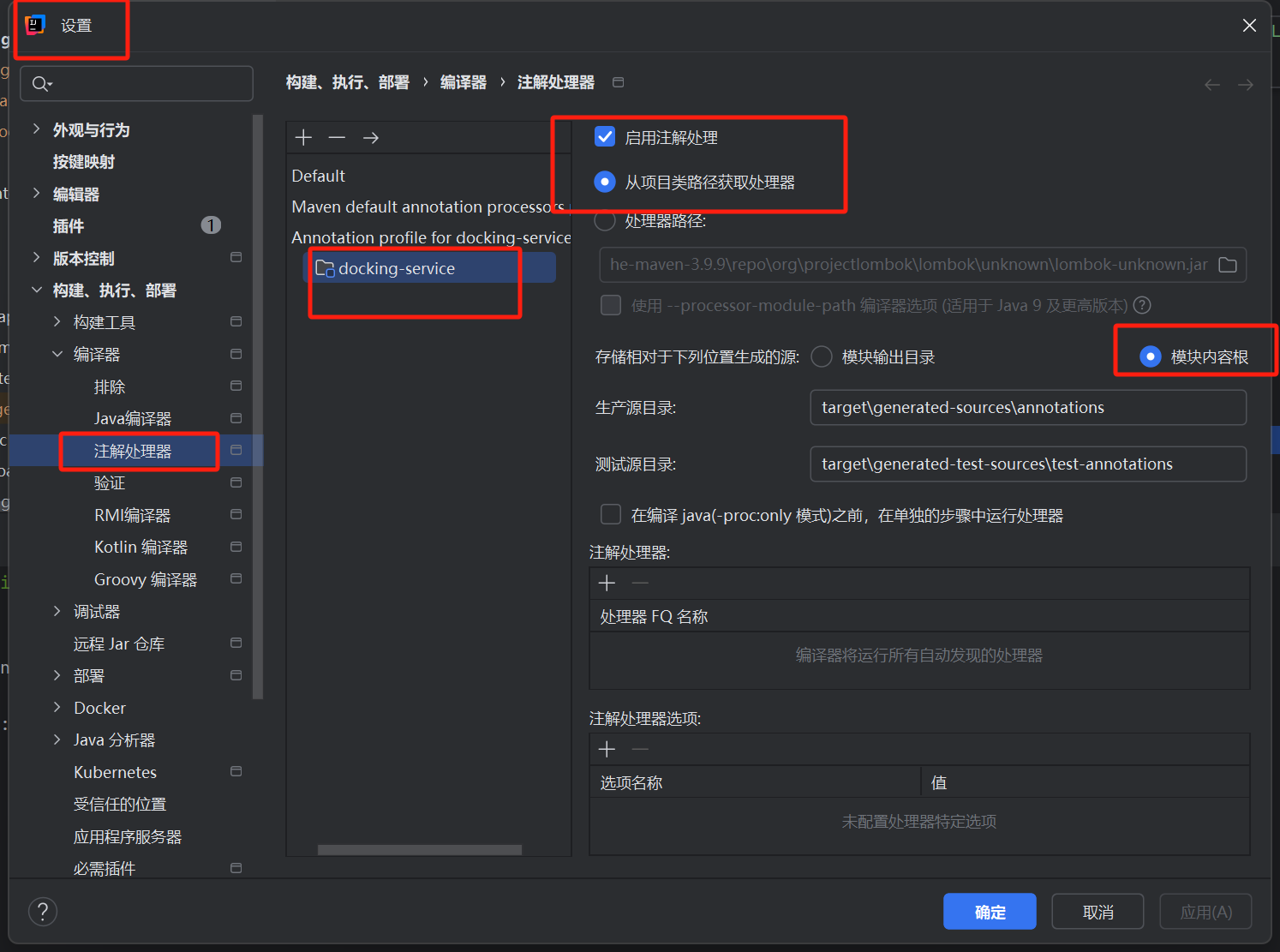 idea没有开启lombok,如图设置即可,注意要选择你要启用的项目