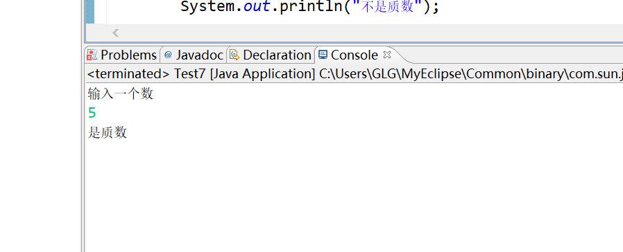 package home; import java.util.Scanner; public class Test7 { /** * @param args */ public static void main(String[] args) { // TODO Auto-generated method stub Scanner input=new Scanner(System.in); System.out.println("输入一个数"); int n=input.nextInt(); boolean b=true; for (int i = 2; i < n-1; i++) { if(n%i==0){ b=false; break; } } if (b) { System.out.println("是质数"); } else { System.out.println("不是质数"); } } }