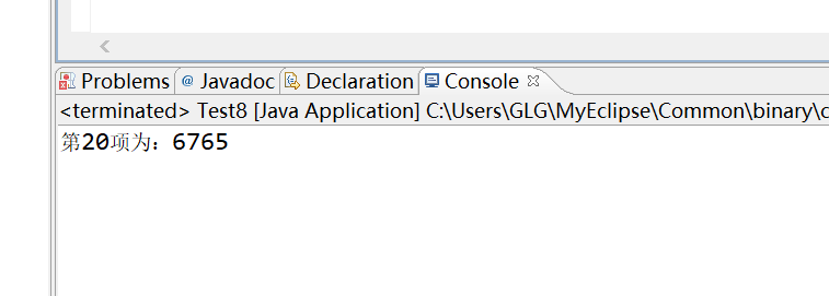 package home; public class Test8 { /** * @param args */ public static void main(String[] args) { // TODO Auto-generated method stub int diyi=1; int dier=1; int xiayige=0; for (int i = 3; i < 21; i++) { xiayige=diyi+dier; diyi=dier; dier=xiayige; }System.out.println("第20项为:"+xiayige); } }