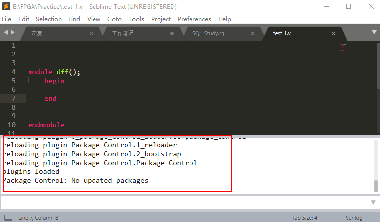 Ctrl + ~ :调出控制台;显示及关闭Sublime Text编辑器package安装进度及命令执行情况。