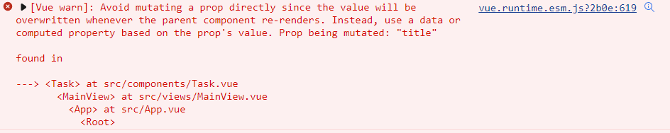 父子组件通过 prop 进行数据传递,但是这一个数据传递是单向下行绑定的。在 Vue 中,父组件的值发生了变化,那么子组件中对应的 prop 数据是能够响应变化的,但是反过来不行。我们并不希望在子组件中能够直接更改父组件中的数据信息——子组件不应该有这么大的权限。对于 prop 这一单向数据流,从某个方面来说,类似于函数中的参数值传递。和函数值传递所不同的是,当我们在子组件中尝试对 prop 进行修改的时候,Vue 会在控制台抛出警告。